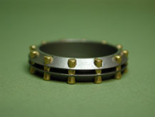 Titanium triangular cross-section band with grooved center and 24K gold bow-tied rivets - approx. 5mm wide